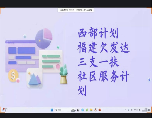 为深入学习贯彻党的二十大精神,做好我院毕业生就业工作,进一步加强毕业生对“西部计划”、“福建欠发达计划”、“三支一扶”及“社区服务计划”的了解。5月12日,人文与管理学院于2023届毕业生群开展线上“三支一扶”等计划指导讲座,本次讲座由辅导员黄益群老师主讲。