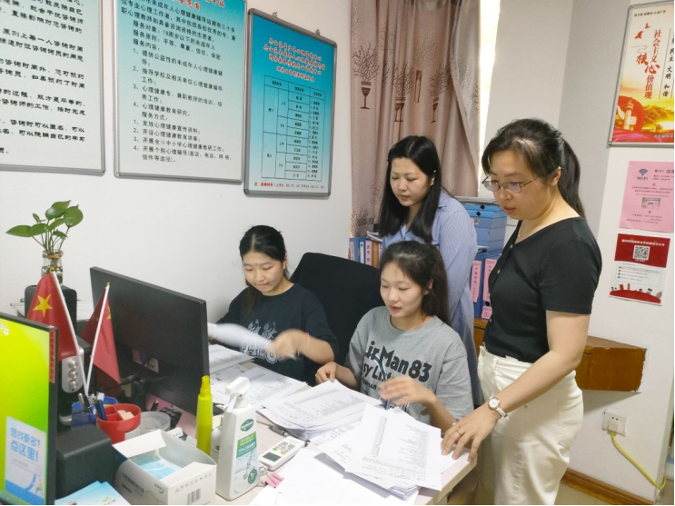 仓山区未成年人心理辅导站王碧琴主任和指导老师欧莉莉老师热情的接待见习小队,为大家介绍了辅导站的基本情况,引导大家快速熟悉辅导站的工作流程。之后,莉莉老师有条不紊地召开了见习队工作会议,详细部署了两周的见习任务。这两周见习小队主要是协助基地老师完成辅导站的档案整理与汇总、接听热线电话咨询并进行登记预约等工作。会议明确了见习队工作安排,见习队表示将全身心投入到各自本职工作中去,将全力协助中心主任和欧老师完成见习期间的专业文书工作。