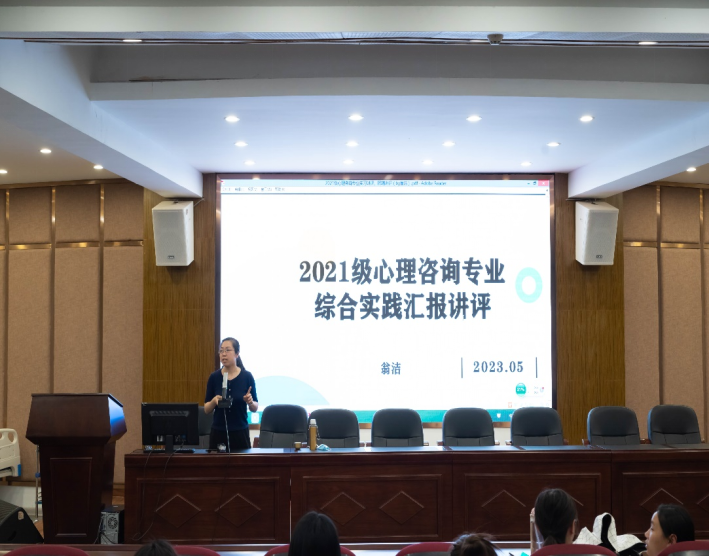 2023年5月31日下午,人文与管理学院心理专业省级职业教育创新教学团队成员翁洁、赖红梅两位副教授在仓山校区多功能厅为21级心理咨询专业举办见习汇报会。