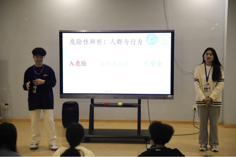 本次活动由实践部薛文杰和黄英共同主持。首先,主持人将同学们分成小组讨论艾滋病的危害,每个小组都派一名成员进行总结,同学们都表现得十分积极。接着,主持人根据人数分发写着职业或人群的卡片,同学们根据手中卡片上的内容判断感染艾滋病毒可能性大小进行站队。主持人根据站队提问并进行正确引导。同学们在此环节中意识到感染艾滋病毒的危险性取决于一个人的行为而不是身份地位。随后,活动进入到第三个环节,工作人员为同学们分发分类卡片,上面写着关键性词语。同学们根据卡片上的关键词按照危险程度分类,主持人引导同学们进行讨论,阐述自己的观点。主持人对大家的发言进行补充和概括,同学们也进一步了解了艾滋病的传播途径和传播方式。最后,活动也到了尾声,主持人提问如何对待艾滋病人,同学们也都表达了自己的想法以及态度。面对艾滋病人,我们需要给予一些关怀,用平常心去对待他们而不是歧视。积极回答问题的同学们也获得了小奖品。