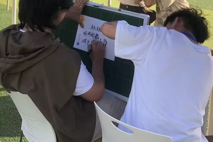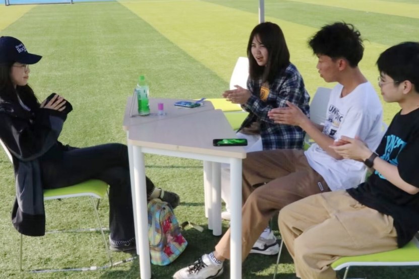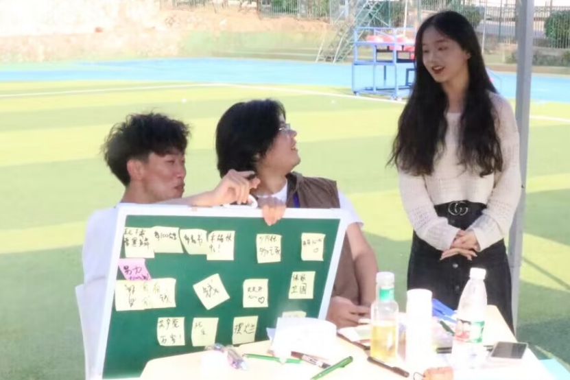 本次活动,设有互动游戏、微笑打卡、快乐接力等不同的体验项目。在“你比划我猜” 游戏中,表演者通过自己的口语表达能力、语言理解能力和想象力等方式,与猜题者碰撞出的火花,展示游戏中的微笑。在微笑打卡的体验中,每个人把一件自己最近感到快乐的事情写在便利贴上,之后贴粘在小黑板上,在展板中分享自己的快乐同时阅读别人的快乐激发校园积极向上的情绪,也引导大学生挖掘和欣赏生活中的小美好。