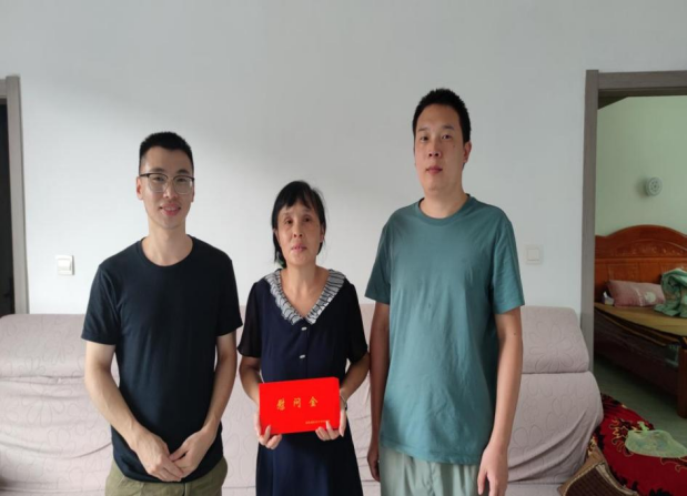 图4:辅导员叶懿蛟老师代表学校和学院送上慰问金和关怀