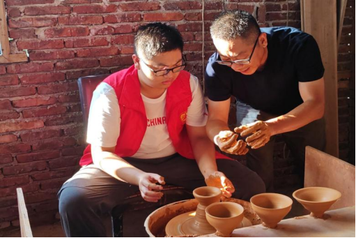 下午,河坝村党群工作者包天辰老师带领闽师专人文与管理学院实践队来到了位于南平市建阳区千荷堂陶瓷工作室参观调研。负责人夏仔勇是南平市建阳区级非物质文化遗产项目“建本雕版印刷技艺”代表性传承人。夏老师带领实践队参观工作室,详细地介绍了建本的制作工艺,实践队队员纷纷表示受益匪浅。勤奋的手艺人从不缺创意,夏老师还将建盏和建本两项非遗技艺结合在一起,既展示了建盏烧制技艺的丰富多彩,又体现了建本雕版印刷技艺的精巧。在工作室,夏老师带领实践队队员体验了建盏制作工序之一的拉胚,实践队队员表示在拉胚的过程中体会到了工匠精神,感受到了传统文化的魅力。