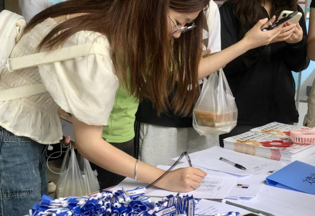 图1:同学们于公益宣传点爱心募捐登记个人信息