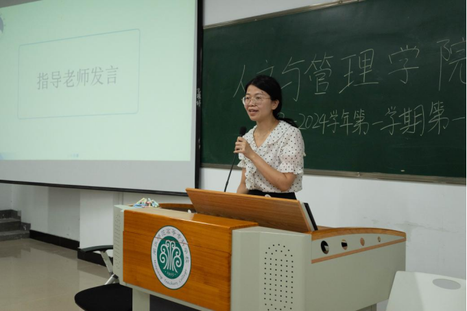 图2:21级辅导员周海英老师对全体成员提出新学期要求