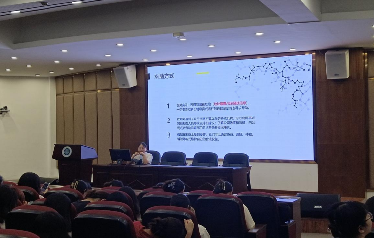 会上,周海英老师就大学生可能遇到的几种常见的安全现象作一一介绍,目的在于帮助同学们进一步提高安全防范认识,掌握安全防范知识,加强自我安全保护,让学生未雨绸缪,常备不懈。其次,辅导员老师指出当代学生存在的问题:一是缺乏社会经验,由于从小都是在父母和老师的呵护下长大,对社会上的不良风气和一些坏人坏事不能作理性的认识;二是缺乏安全意识防范,一些学生安全防范意识淡薄,对可能发生的各种安全问题,缺乏必要的重视和警惕,留下了种种影响安全的隐患。活动最后,老师告诉同学们遇到困难时的求助方式:一是遇到危险,一定要告知辅导员及亲朋好友;二是在职场受到不公平待遇,可以向劳动监察部门寻求帮助并提出申诉;三是假如在利益上受到侵害,同学们可以通过协商、调解、仲裁、诉讼等方式维护自己的合法权益。