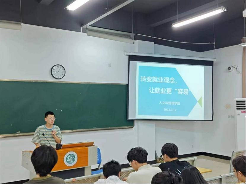 为帮助学生充分了解就业形势,树立正确的就业观念,提升就业动力,9月17日,人文与管理学院开展“转变就业观念,让就业更容易”主题教育。此次活动面向24届毕业生,由叶懿蛟老师主讲。