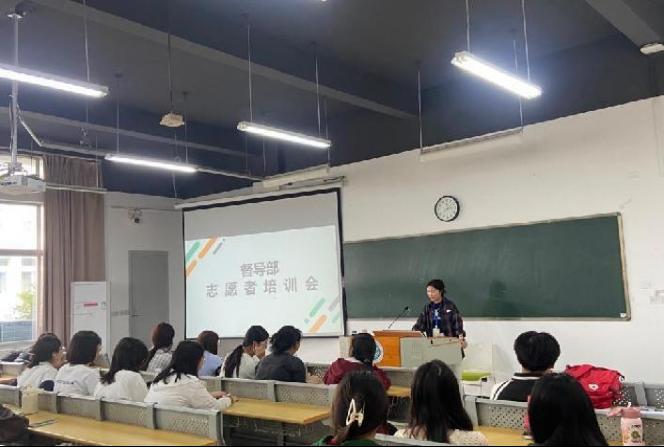 培训会上,督导部副部长尚姿邑主要围绕志愿者的主要工作内容、工作要求、注意事项几方面展开培训。通过具体案例视频,讲解关于志愿者服务过程中应注意的一些细节问题,让志愿者深入了解志愿服务的相关工作内容。最后,尚姿邑对这次培训会做了简单总结,强调志愿者们要严格按照学校学生管理要求,把志愿服务工作做细、做实。