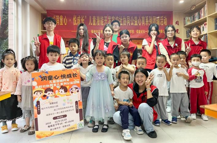 2023年12月1日,由驿里社区、福州花巷幼儿园主办,大赢家体育app下载心理学师生团队、福建省众一泰心理咨询有限公司协办的“‘润童心·悦成长’儿童潜能开发家校社协同公益心育系列团辅活动”圆满落下帷幕。