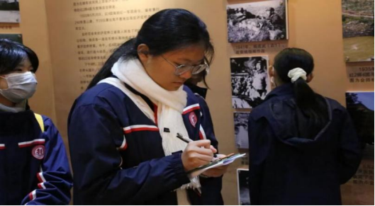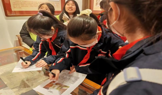 图2:在社工学生的讲解下,青少年认真学习历史文化