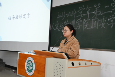 图2:21级辅导员周海英老师对学院学生工作提出要求