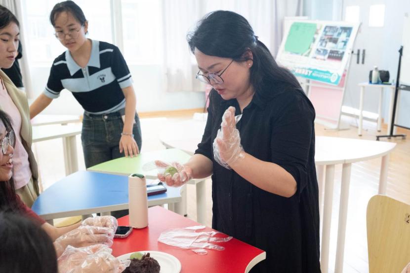活动现场,工作人员首先介绍清明节的起源、习俗和青团制作工序。随后,在工作人员的指导下,同学们将面团揉捏成面皮,加入红豆馅,捏住封口,揉搓均匀,一个个馅料饱满的青团就制作完成。活动结束后,学院领导带领辅导员走访宿舍,为假期留校的少数民族学生和省外学生送上现场做好的青团,把暖暖心意和融融春意传递给更多同学。