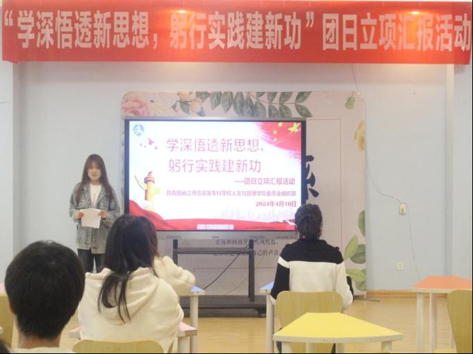 为落实习近平总书记关于青年工作的重要思想,充分发挥团支部政治教育功能,提升各班团支部凝聚力。4月10日,人文与管理学院于教学楼3-209教室开展“学深悟透新思想,躬行实践建新功”团日立项汇报活动,院团委书记黄益群老师、辅导员陈少霞老师出席本次活动。