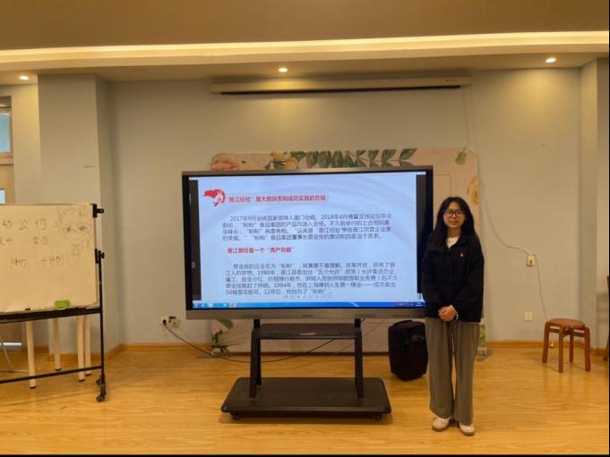 活动现场,两个班支部成员上台分享了他们最近阅读的书籍,有《习近平与大学生朋友们》《闽山闽水物华新》等书籍,并通过精心准备的PPT进行讲解,内容涵盖了晋江经验、四下基层等多个方面。这些分享不仅提供了丰富的知识信息,更通过分享者的深刻见解和生动案例,让在场的每一位成员都能感受到书籍背后的深层价值和启示。同时,每位分享者都结合了自己的学习、工作或生活实例,讨论了如何将书中的理论知识与实践相结合,让此次读书会的内容更加贴近现实,更具有启发性。最后,支部成员围绕着分享者的内容进行了热烈的讨论,交流了各自的看法和体会。
