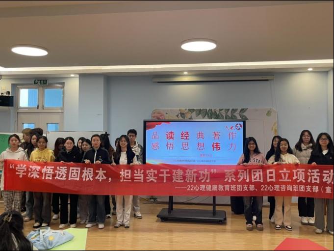 为了深化支部成员理论武装,进一步提升支部成员的理论水平和实践能力,理解、吸收和巩固理论的根基,同时鼓励支部成员在学习的基础上勇于实践,以实际行动来贡献自己的力量,4月7日,人文与管理学院22心理健康教育班团支部、22心理咨询班团支部在仓山校区3209教室召开“品读经典著作,感悟思想伟力”读书交流会团日立项活动,本次会议由22心理健康教育班团支书王一棉主持,两个班支部成员参加。