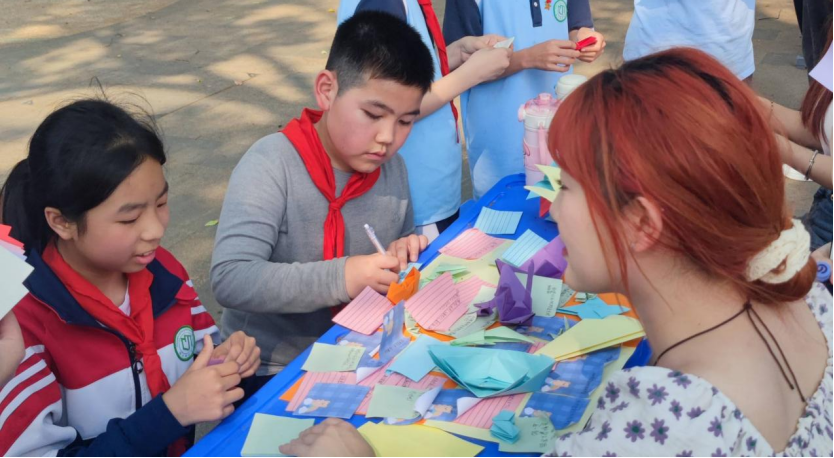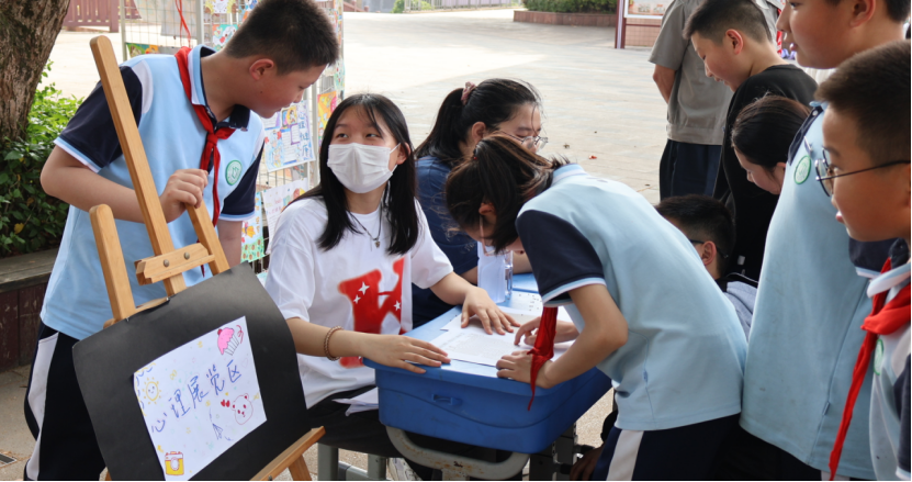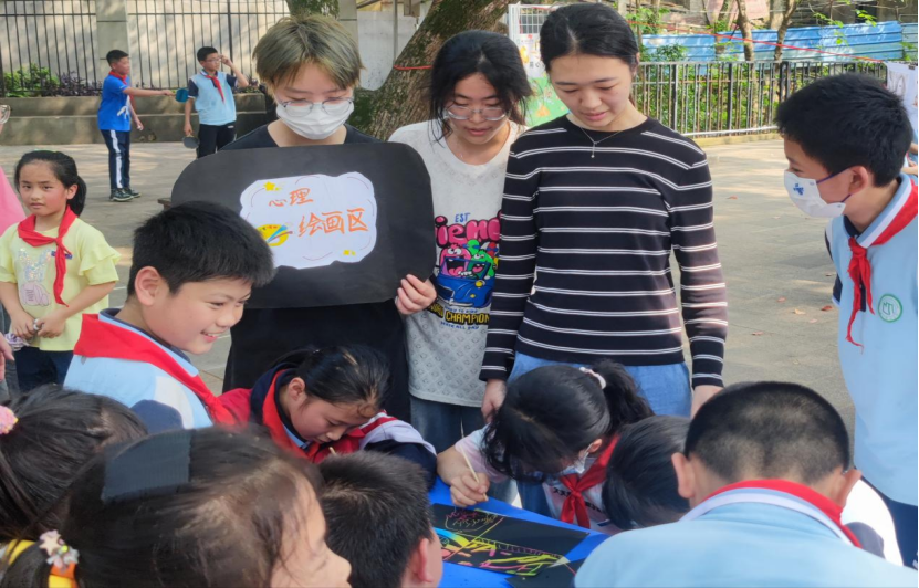 在心理祝福区,为参与学员提供了一个情感表达和交流的平台。小学生们将自己内心的祝福、感激、希望等积极情感通过文字或其他形式表达出来,释放和宣泄个人的情感,促进大学生与小学生之间的情感交流和共鸣。