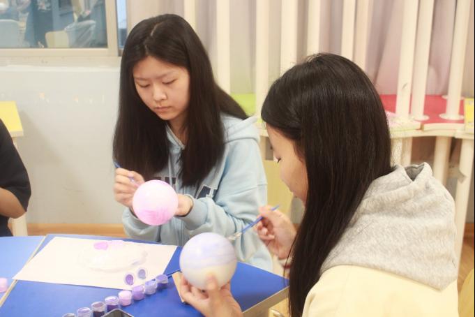 本次活动设置多元化、互动型游戏,让同学们在实践中释放压力,更好的调节自我拥有积极健康的心理状态和情绪,积极面对生活中的变化。在“星球奇观”环节,同学用画笔在泡沫球上描绘了独具特色的小小星球,释放内心情绪。在“星球碰撞”环节,参与者们两人为一组,组队参与进行乒乓球拍迎面接力,在传递球的过程中,展现出色的协调能力和团队之间的默契配合。在活动中进一步培养学生乐观向上的心态,营造积极心理健康氛围,提高学生心理互助、自助的意识。