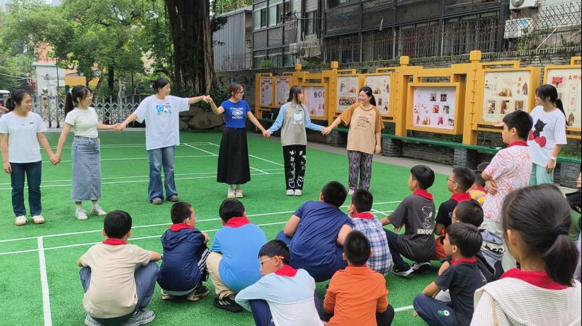 实训期间,见习生们为鼓一小四年级的学生开展4场心理团辅课,课程主要以“桃花朵朵开”、“雨点变奏曲”、“诺亚方舟”、“快乐传递”等多种团辅游戏开展,同时,见习生们完成了5次听课任务,在一线教学观摩中学习优秀教师、积累课堂经验。此外,见习队分别于5月21日和5月22日协助学校举办“525”心理周主题活动,具体通过沙盘体验、OH卡解读、舒尔特方格游戏三个项目,让学生在活动中放松身心,进一步引导学生更好地了解和关注自己的心理健康,助力心理健康成长。