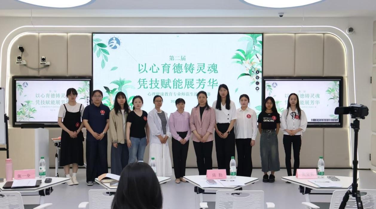 与此同时,心理健康教育专业二年级学生则于仓山校区3-401教室开展“以心育德铸灵魂,凭技赋能展芳华”教学技能决赛,12位选手分别在“网络成瘾”、“校园霸凌”“青春期心理”三大主题赛道上展开竞争,通过15-20min的片断教学和现场答辩,充分展现自己心理健康教育课程设计与实施的能力。