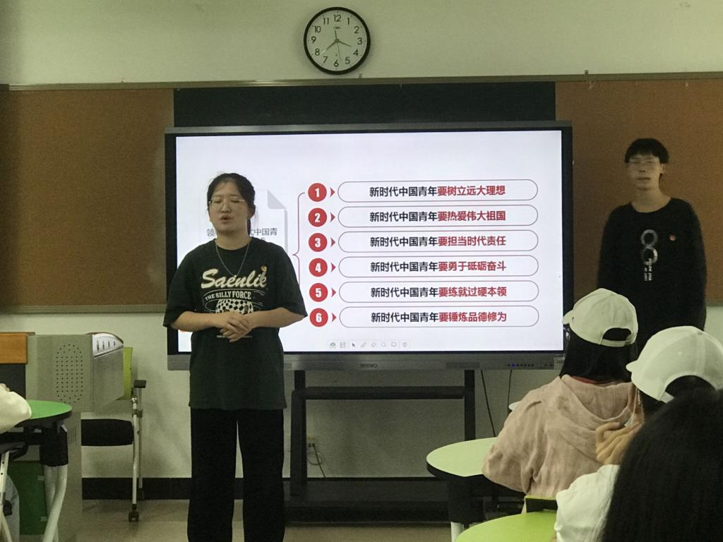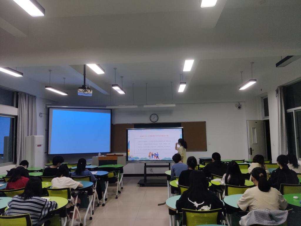 本次活动首先由组织委员进行点名,文娱委员带领同学们齐唱团歌。活动伊始,团支书播放五四宣传片《我们正年轻》,全体团员重温了中国共产主义青年团的百年奋斗路程。21心理咨询1班团支部带来主题演讲《青春的可能》,表达了新时代青年对“青春”的认识。21心理咨询2班团支部、21社会工作团支部通过朗诵《青春中国》、《书写青春华章》等作品,献礼建团百年,用青春声音讲述00后学子“青春心向党,建功新时代”的铮铮誓言。