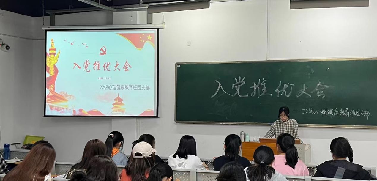 为充实党的新生力量的需要,激发广大团员的政治热情,增强团组织的凝聚力和吸引力,大赢家体育app下载人文与管理学院22级心理健康教育、心理咨询、19导游五年专团支部于10月17日在仓山校区3-604、3-402、3-102教室召开入党推优大会,辅导员黄益群老师和22级全体同学参加会议。