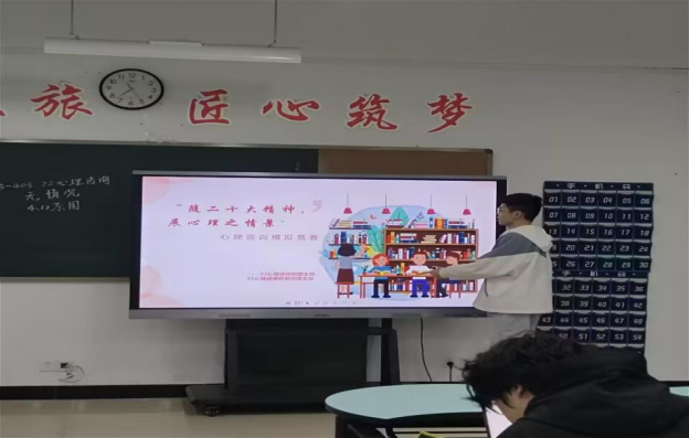 为了进一步提高大学生的心理素质,促进大学生的身心健康和谐,宣传普及心理健康知识。4月12日,22级心理咨询班团支部、22级心理健康教育班团支部于教学楼3-403教室开展“随党的二十大精神,展心理之情景”心理咨询模拟竞赛主题团日活动。