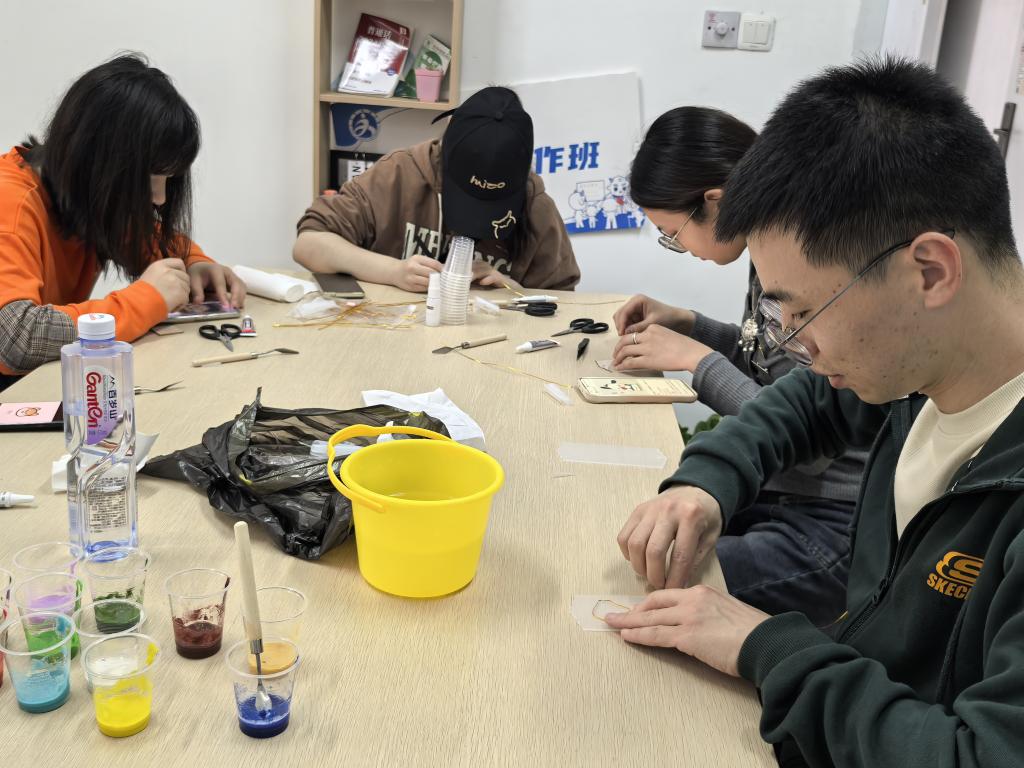 活动中,团支书沈宿桐系统讲解了掐丝珐琅自元代传入中原的发展历程,解析“铜胎掐丝珐琅”工艺核心技艺,通过赏析历史文物阐释传统工艺中“致广大而尽精微”的工匠精神。实践环节中,全体同学分组进行掐丝、点蓝等工序制作,将理论转化为创意实践,最终完成多件融合传统技艺与现代审美的掐丝作品。