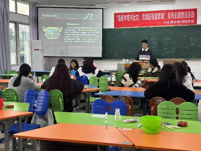 3月12日,24心理咨询2班团支部在教学楼3-703教室、“一站式”学生社区特色功能区开展“青春展风采,匠心焕华光”主题团日活动,通过“理论+实践”模式沉浸式体验掐丝珐琅技艺,传承非遗文化,辅导员叶懿蛟参加了本次活动。