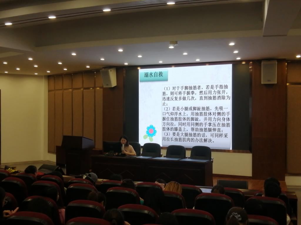 主题教育的起初由人文社科系19级辅导员黄益群从每年溺水人数统计总结进而教育同学们提高溺水安全的重要性;其次对于溺水情况时应该如何自救的做出明确的规范措施进行说明以及遇到他人溺水时应该如何拯救他人;最后为同学们罗列出安全游泳的注意事项,规范了游泳安全的各项条例。