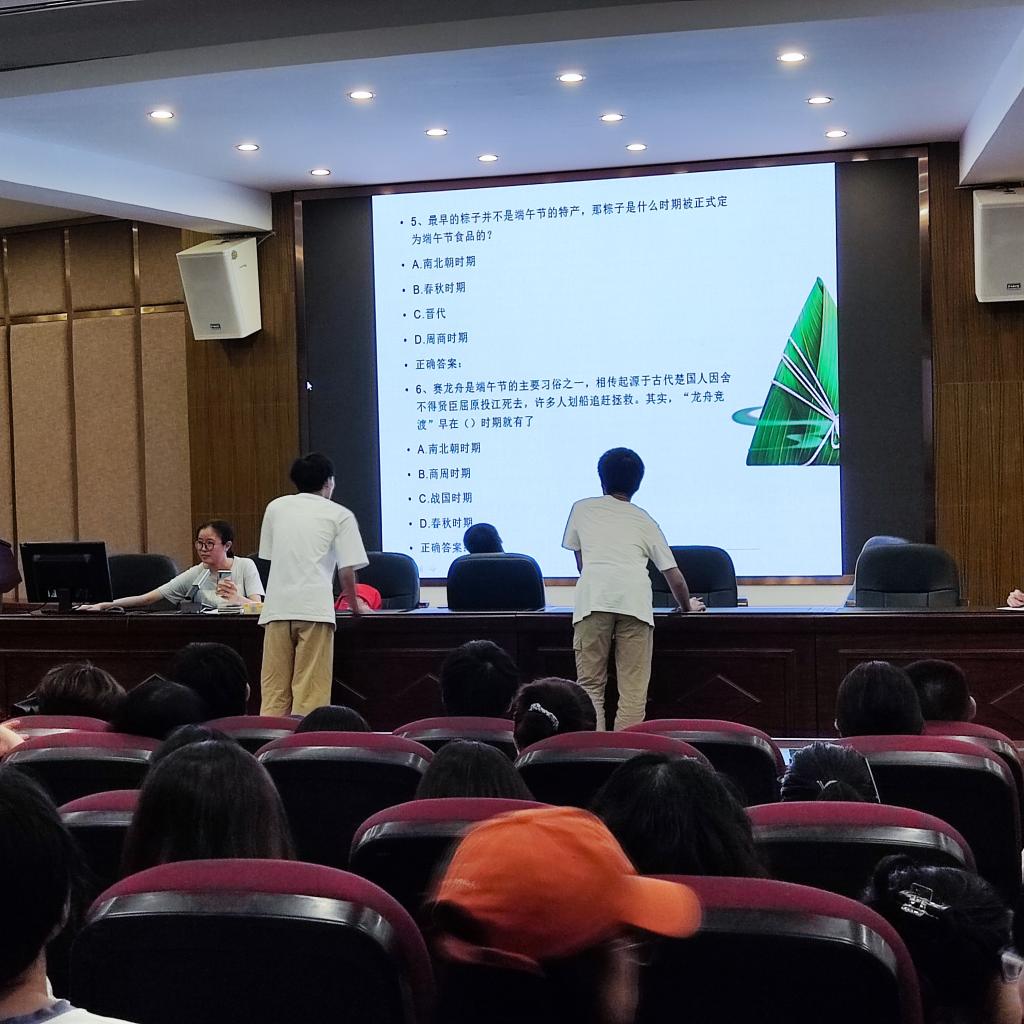 在这次主题教育活动开始前,人文社科系2020级辅导员首先祝愿同学们端午安康,并举行了一个小型的端午知识竞答比赛,让同学们在娱乐竞答中学习到更多关于端午节的传统习俗与知识,更好地继承和发扬中华民族传统节日。其次,辅导员以端午节划龙舟习俗向各位同学引入防溺水的安全教育主题,并以一些溺水事故举例的方式来引起大家对于防溺水安全教育的重视。最后,辅导员还特别讲解了一些安全游泳防溺水的良好习惯和常识性准备,并详细分享了一些溺水事故发生时的现场急救自救方法,让同学们对溺水急救自救方法有所了解,以备不时之需。