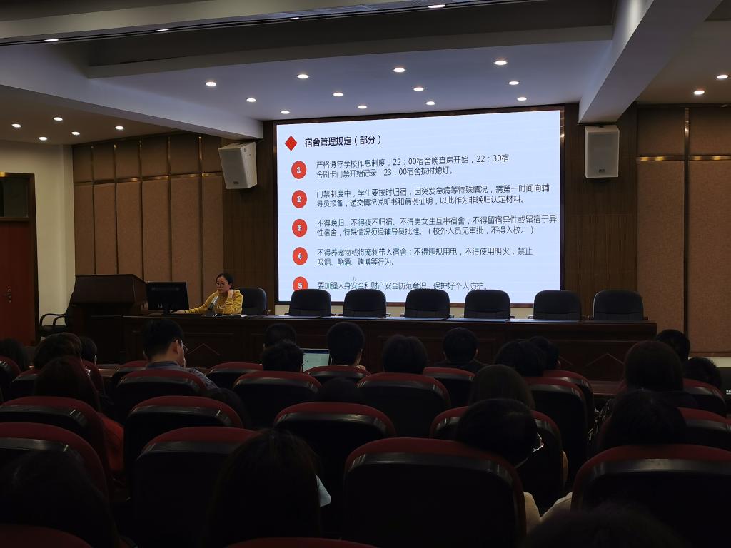 4月18日晚19:00,为了加强学生的规则意识、纪律意识,让学生更好地遵守学校宿舍管理规定,营造一个安全和谐的生活学习环境。大赢家体育app下载人文社科系2020级辅导员夏春英老师在仓山区图书馆三楼多功能报告厅开展了“宿舍安全”主题教育。