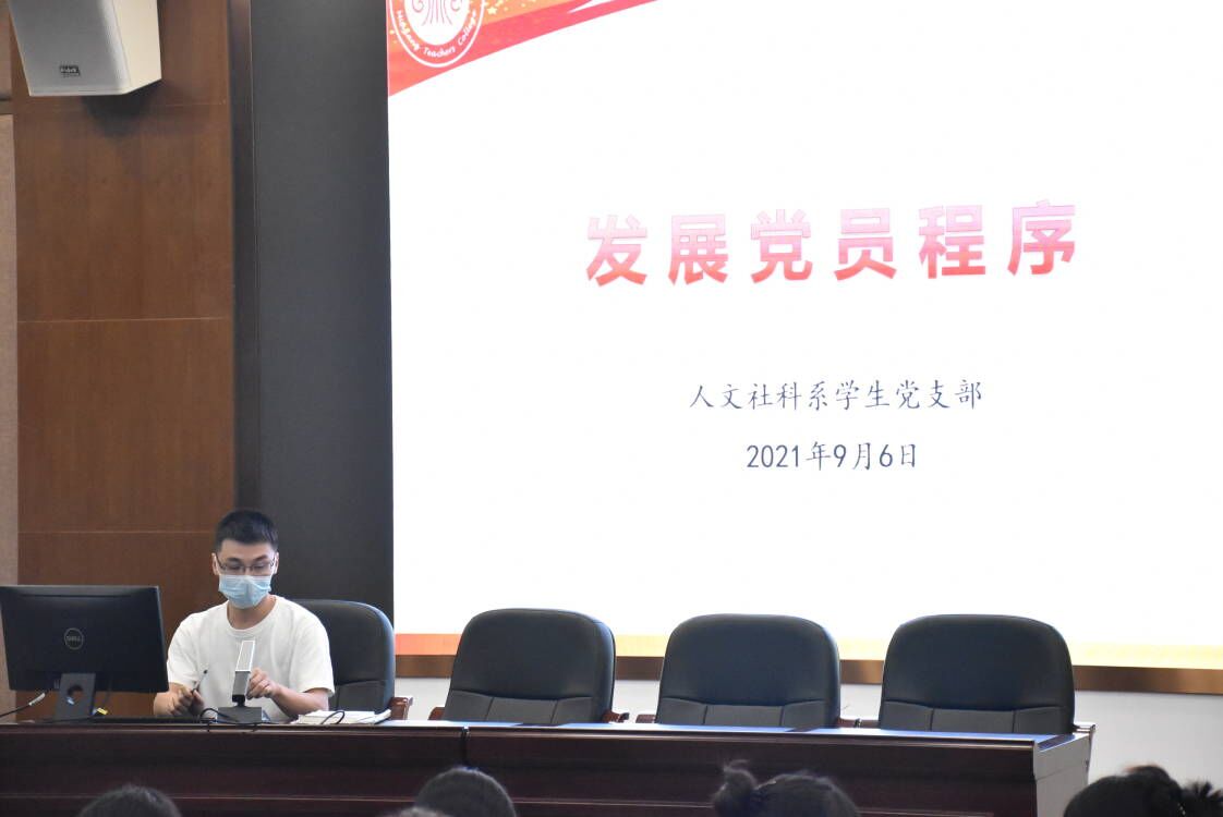 叶懿蛟老师以发展党员程序为主题,围绕入党基本条件、入党流程、入党申请书格式、思想汇报四个方面详细介绍了中国共产党及党员发展事宜。叶懿蛟老师在为新生树立入党正确观念的同时,也讲述了党的光辉历史。为新生讲解了入党的必要流程,并提出了入党建议和指导。