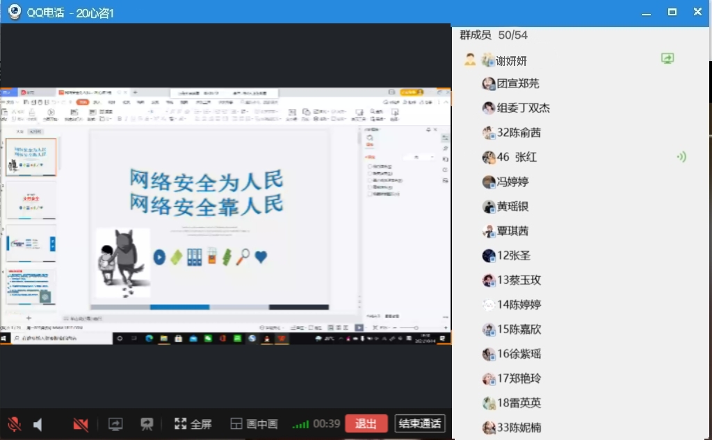 网络安全,是防线也是底线。为响应国家网络安全教育号召,积极向同学们科普相关的网络安全知识与防诈骗技能,鼓励广大同学共同筑建安全可靠、风清气正的网络空间。10月15日-19日,人文系20级学生通过线上班群和参与微信、易班网络安全知识竞答等方式开展网络安全教育的系列学习活动。