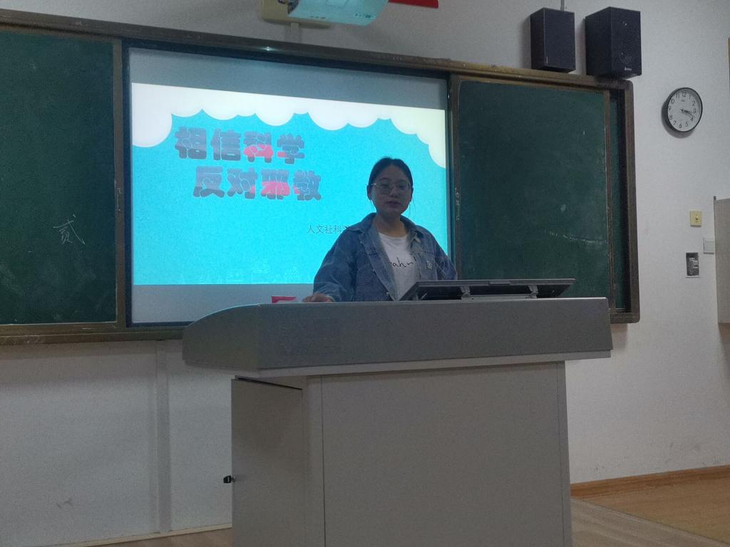 为使广大学生进一步提高识别、抵御和有效防范邪教的能力,培养学生正确的世界观、人生观。福清校区辅导员周海英老师、仓山校区辅导员叶懿蛟老师带领人文系同学于10月17日晚,举办“相信科学,反对邪教”的主题教育活动。