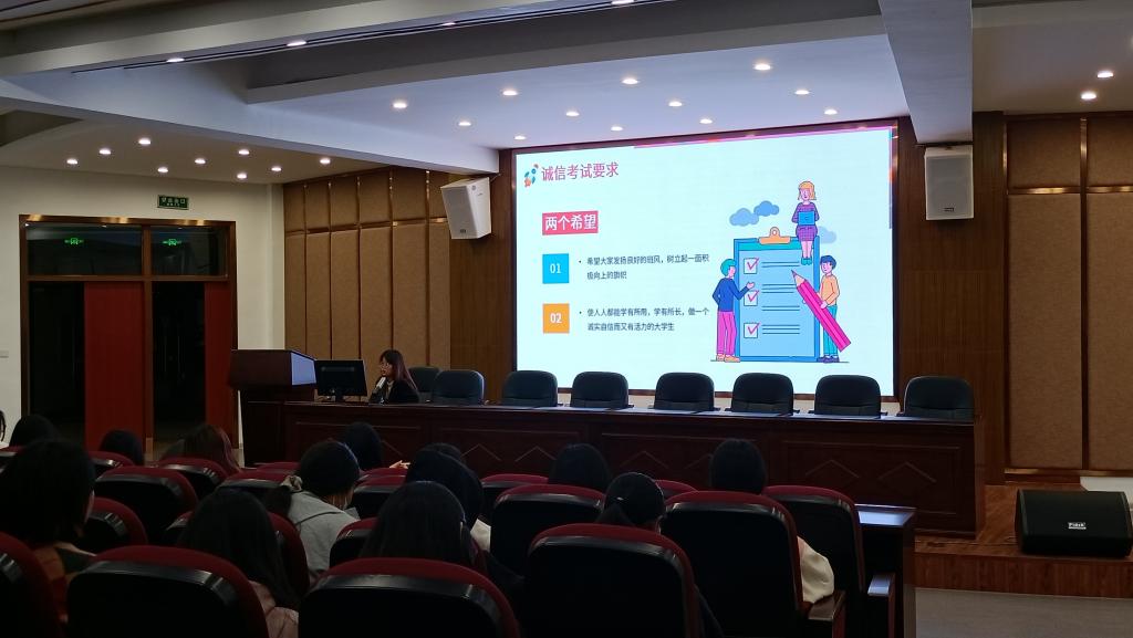 据悉,本次“爱学习,讲诚信”主题教育,让同学们更加深刻地意识到学习的重要性,学习可以增智、可以解惑、可以辨是非,学无止境。同时此次主题教育也告诫同学们要做到诚信考试,手握诚信,积极应考,做诚实自信且爱学习的大学生。