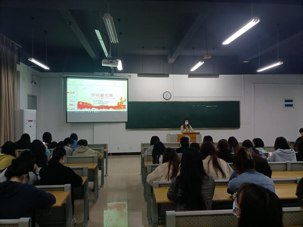 在本次主题教育中,辅导员带领同学们回顾了学院往期的劳动主题相关系列活动,并鼓励同学们积极参与劳动技能大赛,感悟劳动带来的喜悦之情,体验其乐趣所在。除此之外,辅导员通过劳模人物的介绍和相关视频播放为同学们讲述了不同时期的劳模精神,传递正能量,引导学生理解劳动的深刻意义,明白幸福的创造要靠踏实的劳动。在活动尾声,辅导员向同学们阐述了弘扬劳模精神的重要性和必要性,让学生在习近平总书记“光荣属于劳动者,幸福属于劳动者”这句话中明晰自身的奋斗方向和人生目标,充分展示了个人价值感的体现。