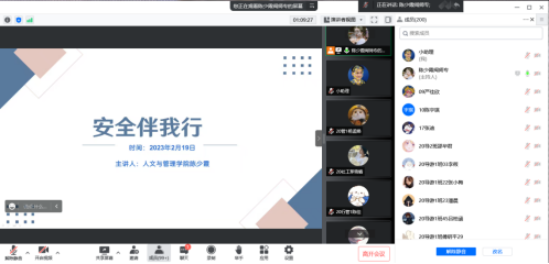 没有安全就没有未来,要时刻紧绷安全的弦。通过本次线上会议,同学们对安全知识有了更为深入的了解,深刻认识到安全的重要性,真正去做到安全伴我行。