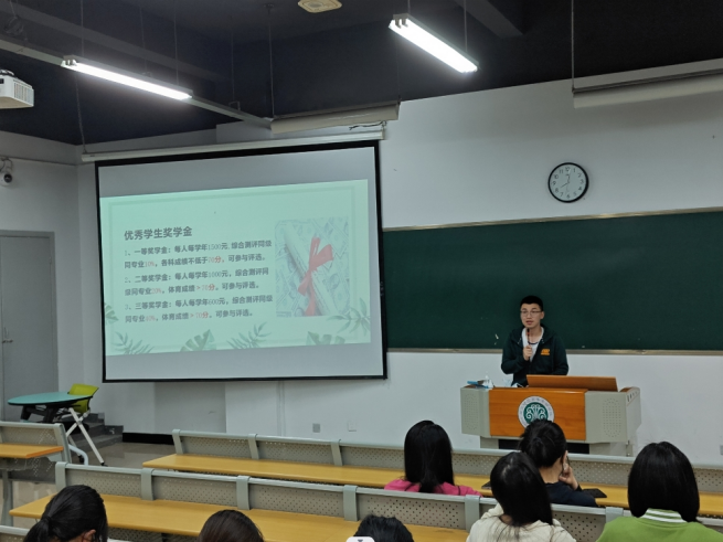 图2:叶懿蛟老师详细介绍优秀学生奖学金评选条件