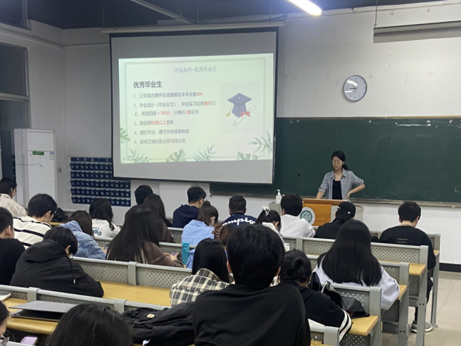 图1:黄益群老师为同学们介绍优秀毕业生评选条件