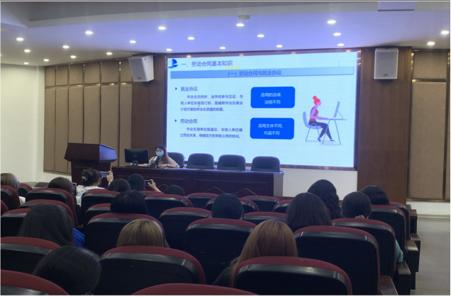 在本次主题教育中,辅导员详细解说了劳动合同与就业协议的相关知识,特别是就业中可能遇到的法律风险和风险规避做了详细的讲解,为毕业生合法签约,保护自身合法权益提供法律保障。通过介绍劳动合同拓宽同学们的知识面,加深同学们对劳动合同的认识,增强劳动合同在毕业生心目中的重要性。最后,辅导员介绍了毕业生求职创业补贴,使得毕业生们更加了解政策,及创业补贴的针对人群、申领条件以及需要哪些申请材料,同时也积极推动毕业生就业和社会保障工作进展。