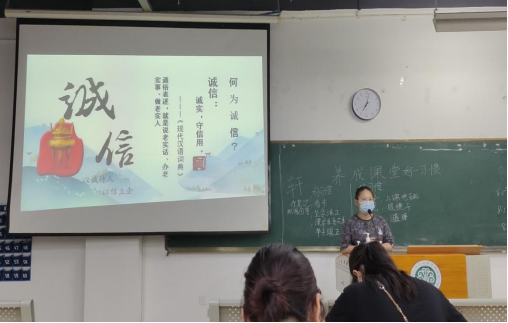 图2:薛启凡老师教育同学们应在日常生活中规范诚信行为