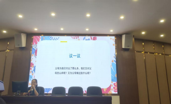 本次活动围绕感恩父母、感恩老师、感恩同学三个方面展开,辅导员老师以生动的语言和实例从不同角度深入浅出地阐述了感恩的内涵和意义,引导同学们如何在日常生活中践行感恩精神。此外,活动中还设置了多个互动环节,如举手分享自己或身边的感恩故事以及给父母、老师、同学们说一句感谢的话等等,让同学们通过参与活动,切实加深对于感恩主题的理解,感受到感恩的力量,体验感恩的美好。活动最后,辅导员鼓励同学们在未来的学习生活中,要以此次活动为契机,将感恩精神融入日常生活,以具体行为去传递正能量,用实际行动去回报社会。