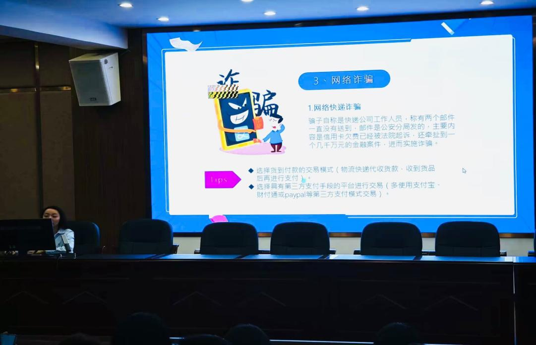 图1:辅导员叶懿蛟老师介绍新型诈骗方式