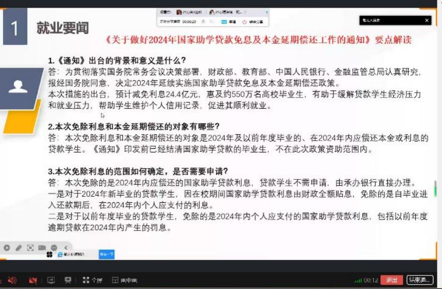 为帮助我院2024届毕业生了解就业形势,把握择业原则,提升就业能力,助力毕业生高质量就业,推动就业工作走深走实,3月24日,人文与管理学院于线上成功开展“把握求职要点,冲刺春季招聘”2024届毕业生就业指导讲座,本次讲座由21级辅导员叶懿蛟老师主讲。