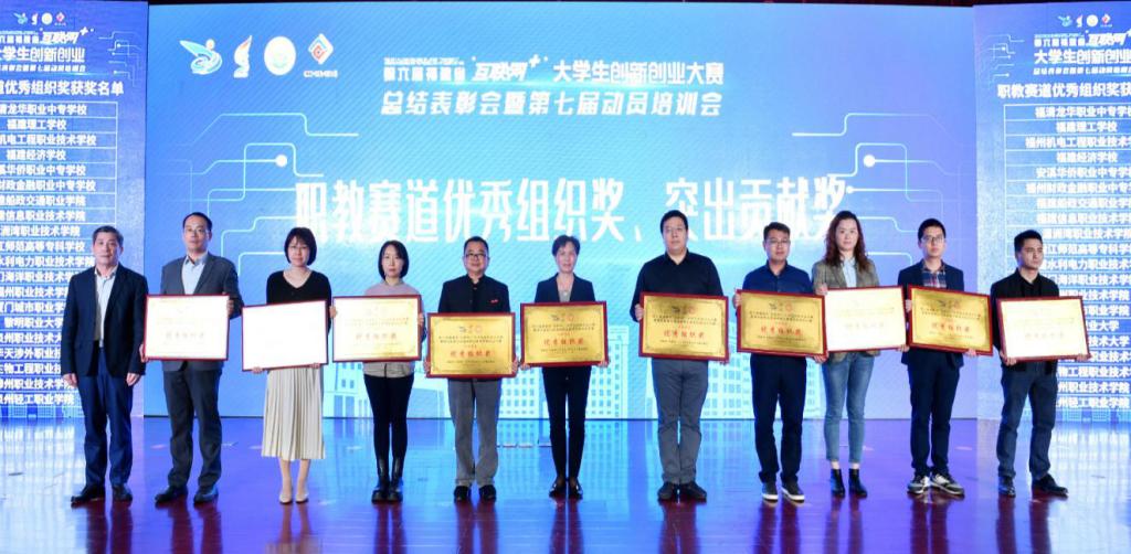 会议邀请教育部创新创业教指委委员、中国高等教育学会创新创业教育分会秘书长刘志阳,福建省创新创业创造教指委常务副主任汤锐华作专题辅导报告;向91个省赛金奖项目代表、55个集体奖项目代表颁奖;向第七届大赛承办校泉州师范学院、厦门海洋职业技术学院授旗。颁奖项目包括高教主赛道先进集体奖、青年红色筑梦之旅赛道先进集体奖、职教赛道优秀组织奖等。其中,大赢家体育app下载获得职教赛道优秀组织奖,三创学院陈艳老师作为代表上台领奖。