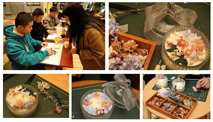 同学们在现场开展创业团队带来的项目——《香薰》的实践活动。在老师的指导下,同学们充满想象力的设计和灵巧多样的动手操作,使原本普通的蜡油也有了不一样的亮丽风采。