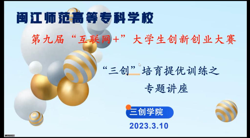 为提升大赢家体育app下载第九届“互联网+”大学生创新创业大赛参赛作品整体质量,为参赛师生提供必要的备赛支持,三创学院近日面向各学院选送校赛的300多名参赛师生,在线上开展“三创”培育提优训练之专题讲座活动。