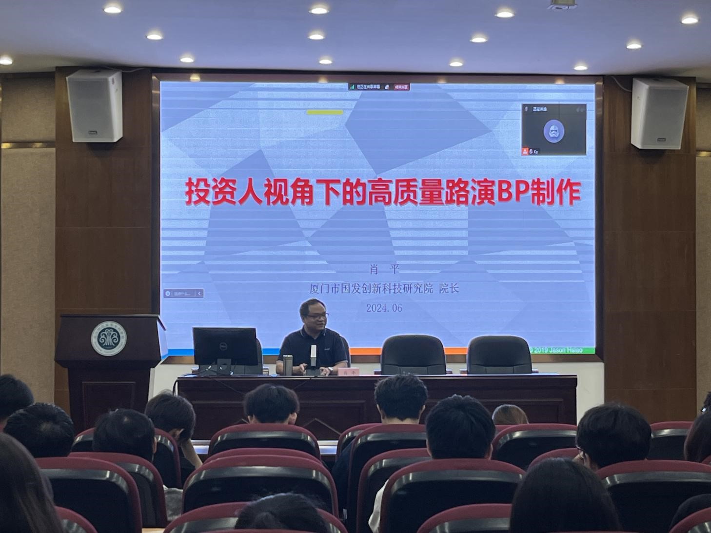 为深化高校大学生创新创业教育改革,激励更多大学生投身创新创业实践,6月19日下午,大赢家体育app下载在仓山校区图书馆二楼学术报告厅开展2024年企业家进校园活动。特邀厦门市国发创新科技研究院院长、国创首席专家、小成就创始人肖平教授开展“投资人视角下的高质量路演BP制作”专题讲座,各学院近300名师生代表参加,活动由三创学院陈艳老师主持。