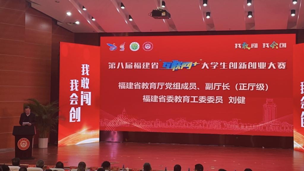会上,刘健总结了第八届福建省“互联网+”大学生创新创业大赛的工作亮点: 参赛规模明显扩大;参赛项目科技含量显著提升;赛事成绩突破新高;项目带动效应显著;我省国赛获奖总数再创新高。