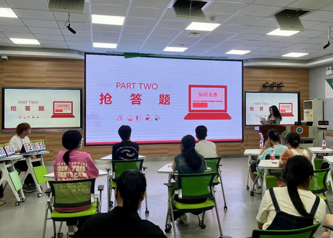 9月8日下午,宪法素养竞赛在旗山校区教学楼3016教室举办。本次活动采用积分制,共分三轮答题环节,包括必答题、抢答题、风险题。比赛现场气氛紧张刺激,参赛者们沉着冷静,应对自如,他们精准的回答展现了自己厚实的宪法知识储备,也考验了他们的临场应变能力。